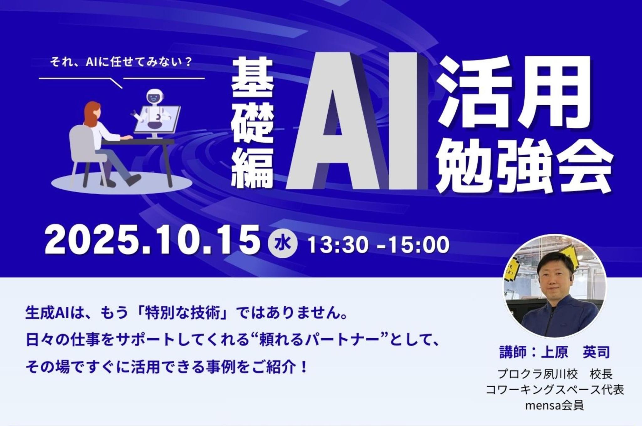 AIの基本を楽しく学び、仕事や日常生活、さらには子どもの学びのサポートに取り組む方法を体験できる勉強会を開催します。